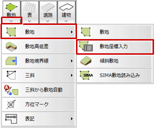 - 「敷地」メニューから「敷地」の「敷地座標入力」を選びます。