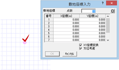 - 基準点をクリックすると、「敷地座標入力」ダイアログが表示されます。