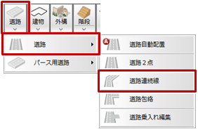 - 「道路」メニューから「道路」の「道路連続線」を選びます。