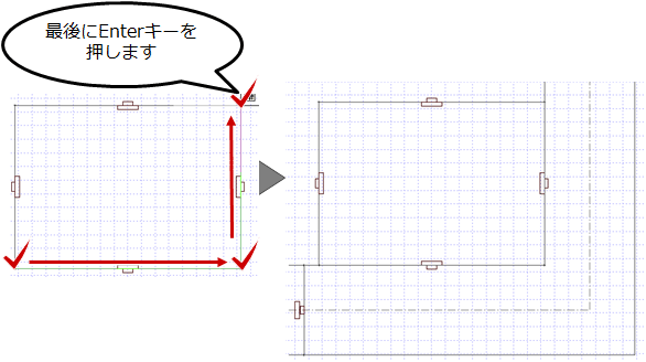 - 敷地の角を順にクリックして、最後にEnterキーを押します。
