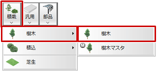「植栽」メニューから「樹木」の「樹木」を選びます。
