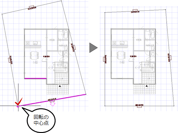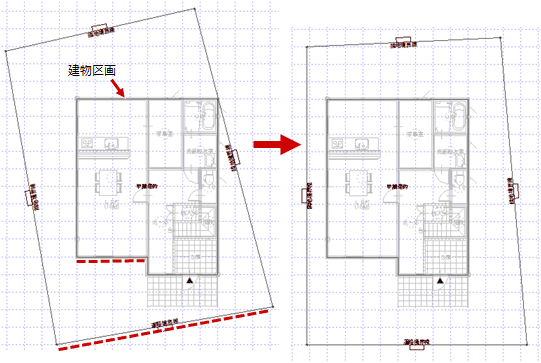 ※「敷地回転」コマンドを使用して敷地の回転をするときは、建物区画が作成されている必要があります。