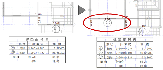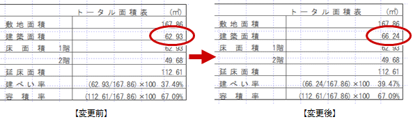 Q:建築面積求積図を変更したとき、トータル面積表へ建築面積を反映する方法を教えてください。