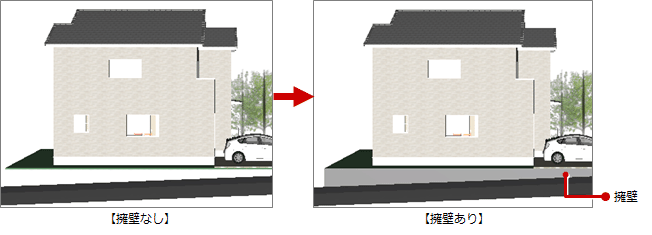 A:「外構」メニューの「塀」の「擁壁」を使用して、隙間を埋めます。