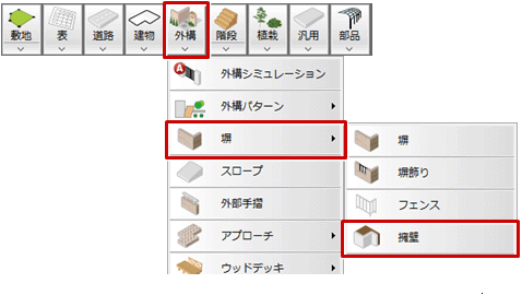 「外構」メニューから「塀」の「擁壁」を選びます。