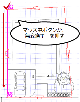 逆回りにするには「始」をクリックした後、マウスの中ボタンか無変換キーを押します。