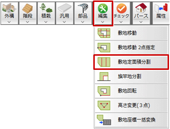 - 「編集」メニューから「敷地定面積分割」を選びます。
