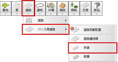 - 「道路」メニューから「パース用道路」の「歩道」を選びます。