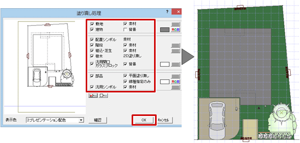 A:「ツール」メニューの「塗り潰し処理」を設定して、配置図をカラーにします。