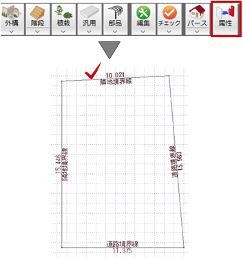 A:配置図で敷地の属性ダイアログにある「斜線タイプ一覧」を変更します。その後、立面図を再作成します。