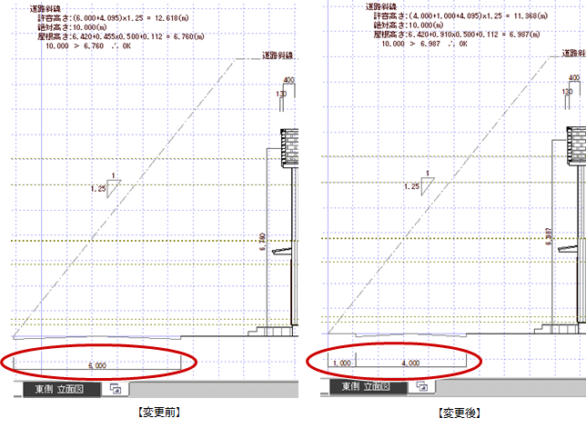 Q:道路斜線の道路幅、後退距離を変更して、立面図の斜線制限に反映する方法を教えてください。