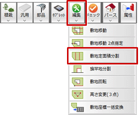 - 「編集」メニューから「敷地定面積分割」を選びます。