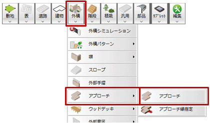 - 「外構」メニューから「アプローチ」の「アプローチ」を選びます。