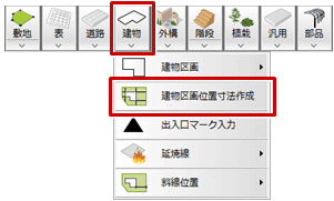 - 「建物」メニューから「建物区画位置寸法作成」を選びます。