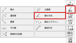 - 「線分」メニューから「線分方向」を選びます。