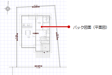 A:「ファイル」メニューの「バック図面・バックデータ」の「バックデータ取り込み」を使って、バック表示した平面図を指定したレイヤ(使用していない「データ