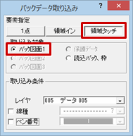 - 「バックデータ取り込み」ダイアログで「領域タッチ」をONにします。
