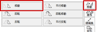 - 建物区画のコーナー部分が1箇所以上敷地に含まれていれば、離れ寸法線が表示されて「敷地移動」を実行できます。