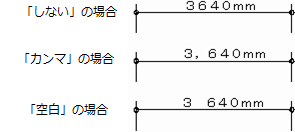 寸法値の位取りは、「セパレーター処理」から「しない」「カンマ」「空白」を選びます。