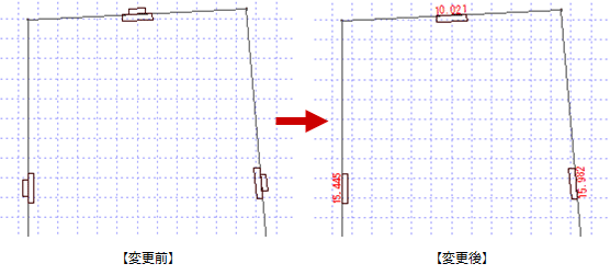 - 「物件初期設定:CAD関連-寸法・引出線」の「寸法線」の「文字高」は、図面全般の寸法文字高に連動しています。設定を変更した後に入力する寸法線の文字高も変わります。