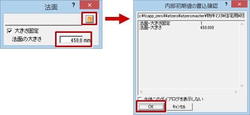 初期値を変更する場合は、入力ダイアログの「内部初期値書込」をクリックして書込みを行ってください。