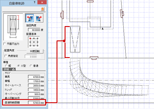 Q:「自動車軌跡」ダイアログの「直進移動距離」について教えてください。