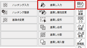 A:「道路」メニューの「道路」を使用する場合は、塗り潰しの設定がないため道路を入力後、「ハッチング」メニューの「塗潰し入力」を使用して入力します。