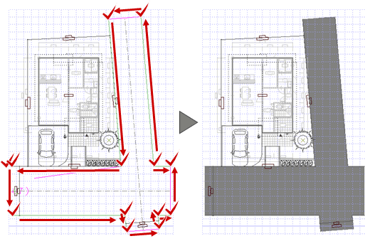 ※ 道路境界線に設定している敷地辺に道路が作成されます。