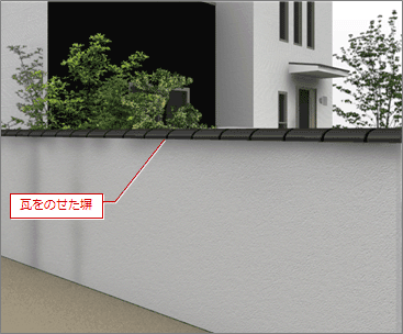 A:「塀」ダイアログの「笠木」を設定して瓦をのせた塀を入力します。