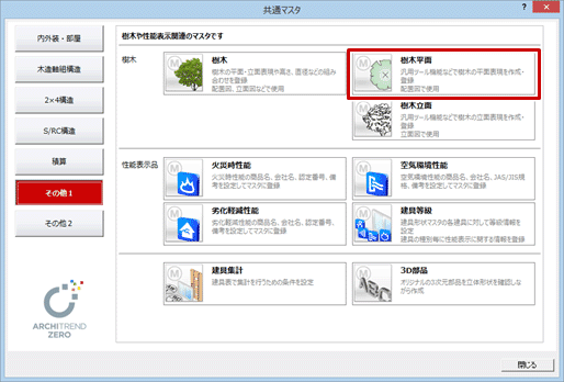 - 「その他1」の「樹木平面」をクリックして樹木平面マスタを開きます。