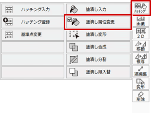 - 「ハッチング」メニューから「塗り潰しの属性変更」を選びます。