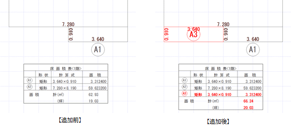 Q:床面積求積図にて床面積を追加する方法を教えてください。