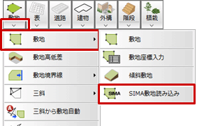 - 「敷地」メニューから「敷地」の「SIMA敷地読み込み」を選びます。
