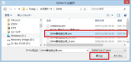 - 「SIMAファイル選択」ダイアログでSIMファイルを選びます。