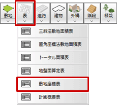 A:「表」メニューの「敷地座標表」で座標表を作成できます。