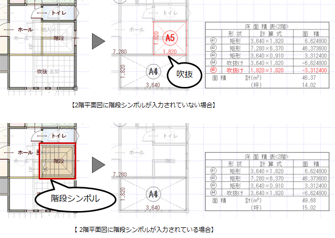 階段シンボルが入力されている場合、吹抜区画は配置されません。