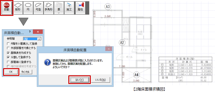Q:階段部分に吹抜の床面積区画が自動配置される理由を教えてください。