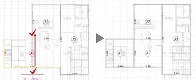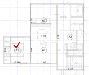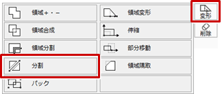 - 分割する始点と終点をクリックして、既存と増築に建物区画をわけます。