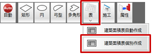 - 「表」メニューから「建築面積表個別作成」を選びます。