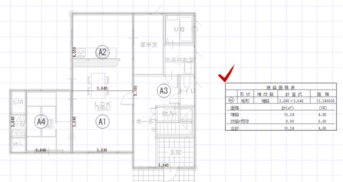 Q:増築部分だけの建築面積表を作成する方法を教えてください。