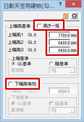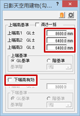 - ダイアログの「上端高1」「上端高2」「上端高3」を変更します。