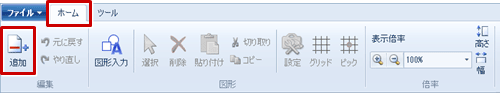 - 「ホーム」タブの「追加」をクリックします。
