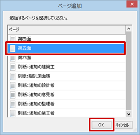 - 「ページ追加」ダイアログで、追加するページを選んで「OK」をクリックします。